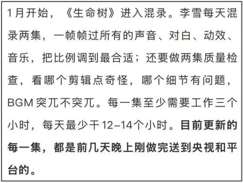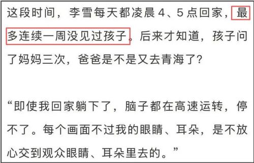 另外,李雪还在采访中多次强调自己为了赶档期有多辛苦。他提到这段时间自己每天都是凌晨4、5点回家,最多连续一周没见过孩子。哪怕回家躺下了,脑子都在高速运转,只为了能够放心地把画面交到观众眼睛、耳朵里去。字里行间都在表达着自己为了观众付出的辛苦、做出的奉献。