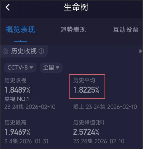 据悉,《生命树》播出之后的收视成绩和网播成绩都不好。目前该剧已经播出过半,平均收视率在1.8%左右,这个成绩放在央视八台实在是有些差了。