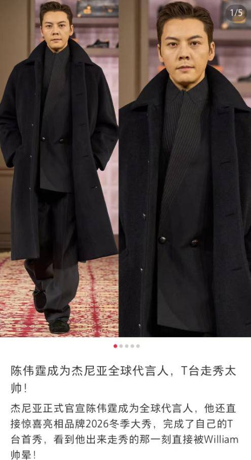 陈伟霆前段时间才官宣了一个新的大牌代言,也没人会觉得他是赘婿。