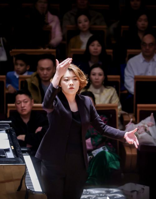 当廖偲婕身着深色礼服,手持指挥棒站在舞台中央,观众席中响起的不仅是期待的掌声,更有一份对“未知”的好奇。在古典音乐的舞台上,钢琴家与指挥家通常是两个独立的角色,前者专注于键盘上的音符,后者则掌控着整个乐团的呼吸与节奏。然而,廖偲婕却选择了一条少有人走的路——她既是钢琴的演奏者,又是乐团的引领者!