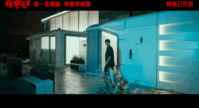 在室外场景的拍摄中,张艺谋则将镜头转向城市建筑和现代科技。