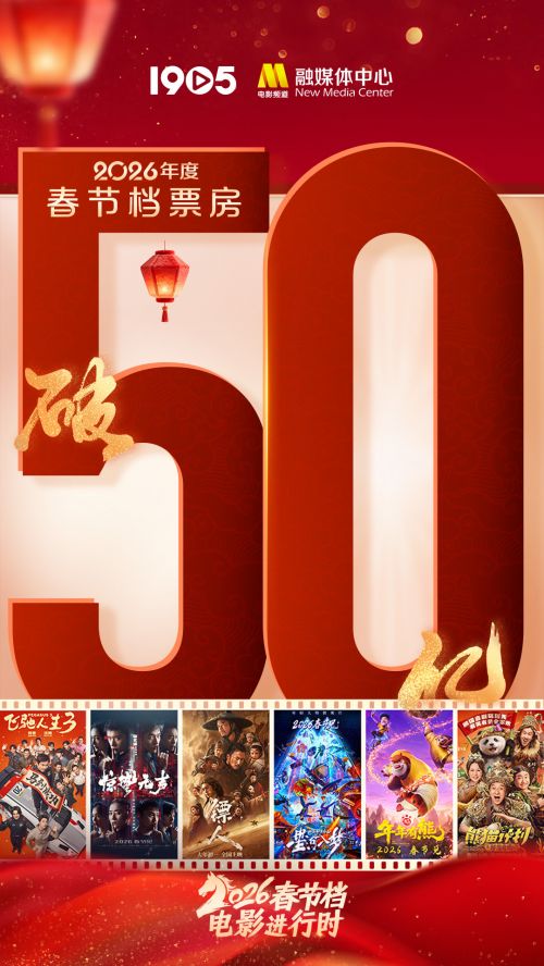 1905电影网讯 2026春节档票房超50亿!截至2月22日大年初六18时,2026年春节档票房(含预售)已突破50亿元!《飞驰人生3》《惊蛰无声》《镖人:风起大漠》分列票房榜前三位。2026春节档观影人次已突破1亿。