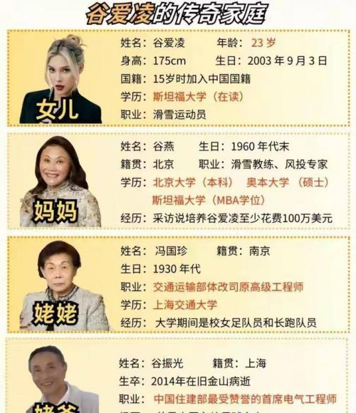当谷爱凌刚刚降生于这个世界时,她的外婆已经度过了相当长的一段时间,特意前往美国陪伴她一同成长。