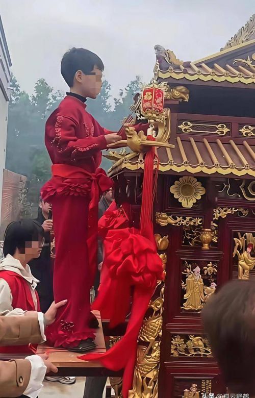 在2月18日这一天,大年初二,由于他的爱好,他登上了巡游轿,被当地的村民们视为“新童”。大家一致决定,今年的仪式将由新童和他以前的大女孩共同完成。