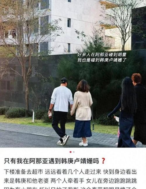 2月23日,有网友于三亚阿那亚碰到了韩庚卢靖姗夫妇,当日,韩庚身着白色T恤搭配黑色裤子,头上戴着黑色棒球帽,整个人瘦了好多,帅气程度直线攀升。