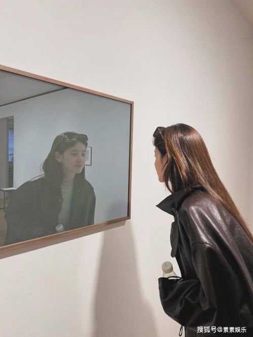 镜头中的章泽天认真观察画展中的一面镜子,说实话,如果从这一个角度来看,章泽天真的很甜美,清新可人。