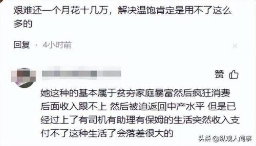 有人直言 “普通人一年都赚不到六位数,她一个月花六位数还哭穷,早知如此何必生这么多孩子”。
