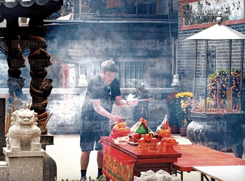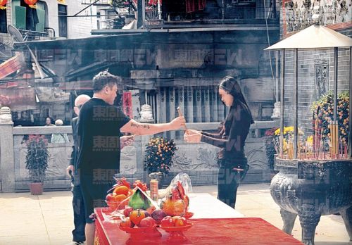 三个人在寺庙拜了一个小时后,结伴离开,找餐厅吃饭。由于女儿也在场,可见三人的相处很自然愉快,魏骏杰的女儿提着一袋物品,新欢拿着魏骏杰衣服还撑伞,看起来就像一家人一样。