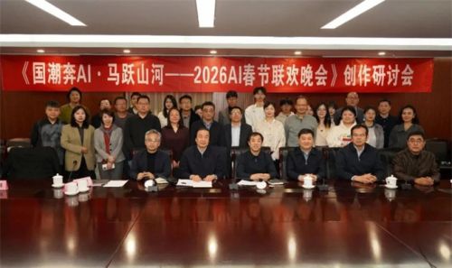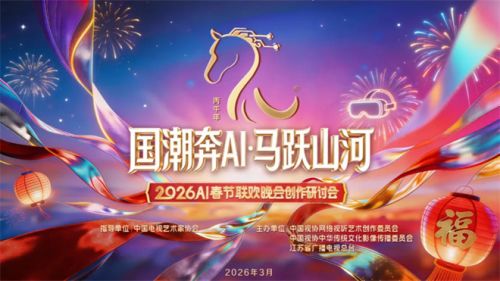 1905电影网专稿 3月9日,由中国电视艺术家协会指导,中国视协网络视听艺术创作委员会、中国视协中华传统文化影像传播委员会和江苏省广播电视总台主办的《国潮奔AI·马跃山河——2026AI春节联欢晚会》创作研讨会在北京举行。