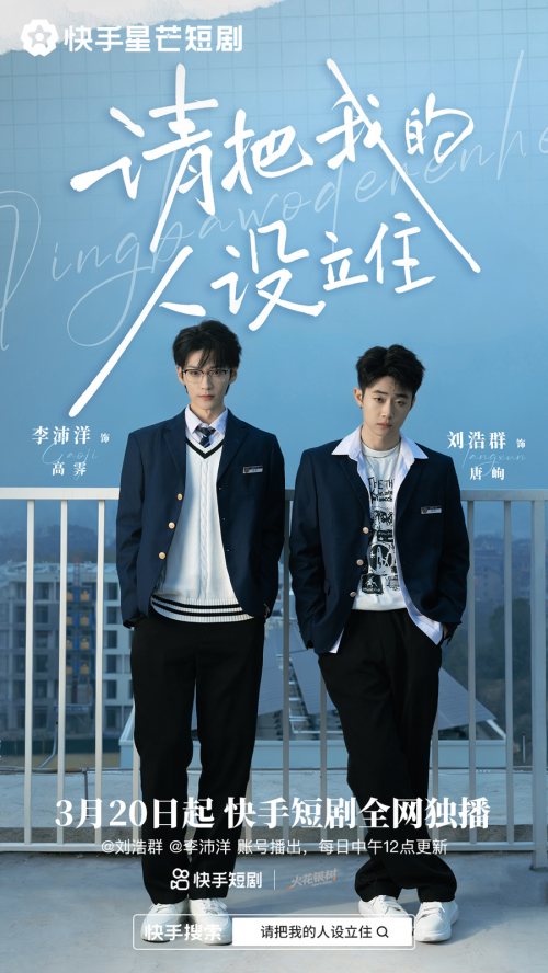 一场灵魂互换之旅,开启两种不同人生。2026年3月20日起,上快手搜索「请把我的人设立住」,或者关注播出账号@刘浩群 、@李沛洋 ,见证冤家少年从对抗到并肩,一步步在错位人生中完成蜕变,成为更加完整、更加优秀的自己。