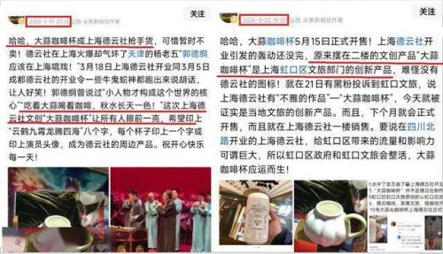 至此,关于“大蒜咖啡杯”的争议进入另一个焦点,大蒜咖啡杯到底和上海德云社有没有关系?