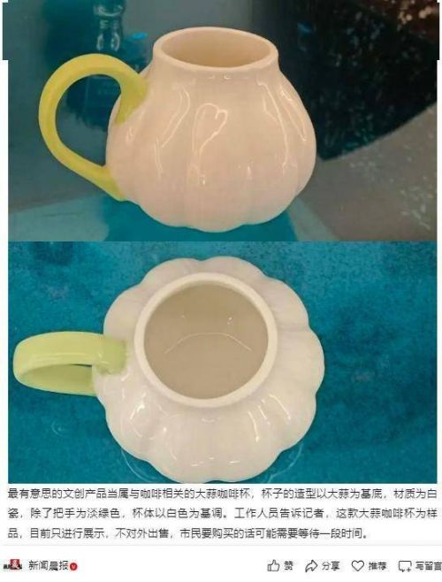 新闻晨报在3月17日发布的文章和视频中都特意突出了大蒜咖啡杯,也是这些报道引起了广泛关注,公众才知道大蒜咖啡杯的存在。