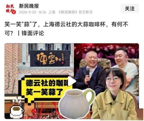 2026年3月,刚开业的上海德云社最火热的话题不是相声也不是郭德纲,而是一个大蒜咖啡杯,由此引发的争议甚至盖过了德云社开业的话题,我们可以称之为,一个“杯具”引发的