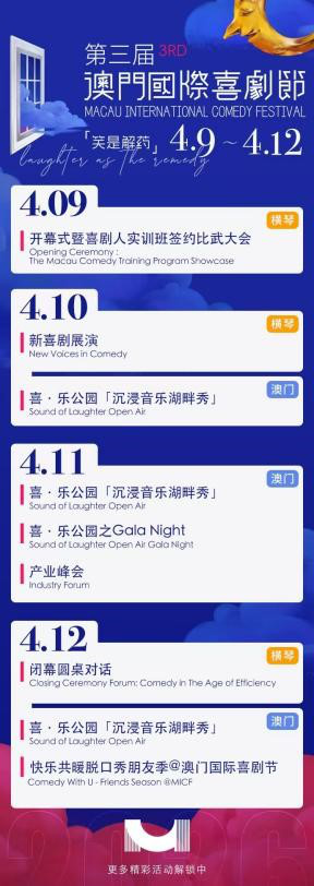喜剧节活动咨询:可通过"澳门国际喜剧节"官方微信公众号、微博、小红书、抖音等渠道获取最新资讯