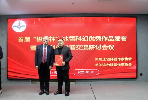 近日,由黑龙江省科普作家协会、哈尔滨市科普作家协会联合主办的首届“极光杯”冰雪科幻作品颁奖暨科幻创作研讨会在黑龙江省科学会堂隆重举行,现场为获奖作者颁发了获奖证书,获奖作者畅谈创作体会并集体观赏了科幻电影《危机妙算》5分钟概念片,此项活动的成功举行标志着首届“极光杯”冰雪科幻作品征集活动画上圆满的句号。