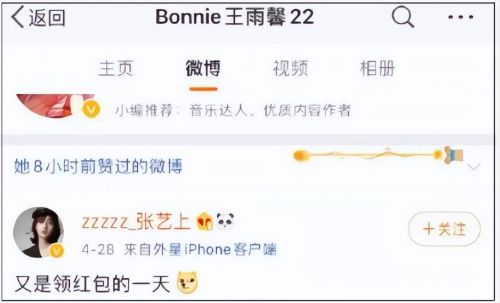 之后,王雨馨又甩出重磅消息暗示两人之间存在第三者,并点赞了多条张艺上微博。同时,还用小号手撕张小姐,嘲讽对方趁着主人不在家串门挑衅。她的朋友也连续发文怒骂,于是张艺上被质疑破坏他人家庭。