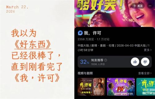 从数据来看,《我,许可》的优势群体恰好是《好东西》等影片所未能覆盖的缺口。随着后续长线放映,其他一二线城市能否因为话题发酵为《我,许可》的票房后劲助力,仍有观察的窗口。