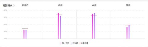 《我,许可》的购票观众中,低频观众的占比甚至比中频观众更有优势。在这一数据上,《我,许可》反而更接近《芭比》的受众分布。除了角色设定之外,演员的认知度或是导致受众变化的关键。