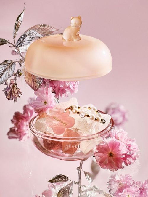 樱花清酒晶石香盒 粉澳宝、白水晶、花朵草莓晶散落其间,莹亮剔透,各有寓意。轻轻掀开,前调清甜率先漫出,中调玫瑰与白花次第盛放,整个春天,就藏在这方寸之间。