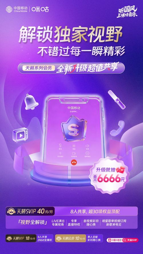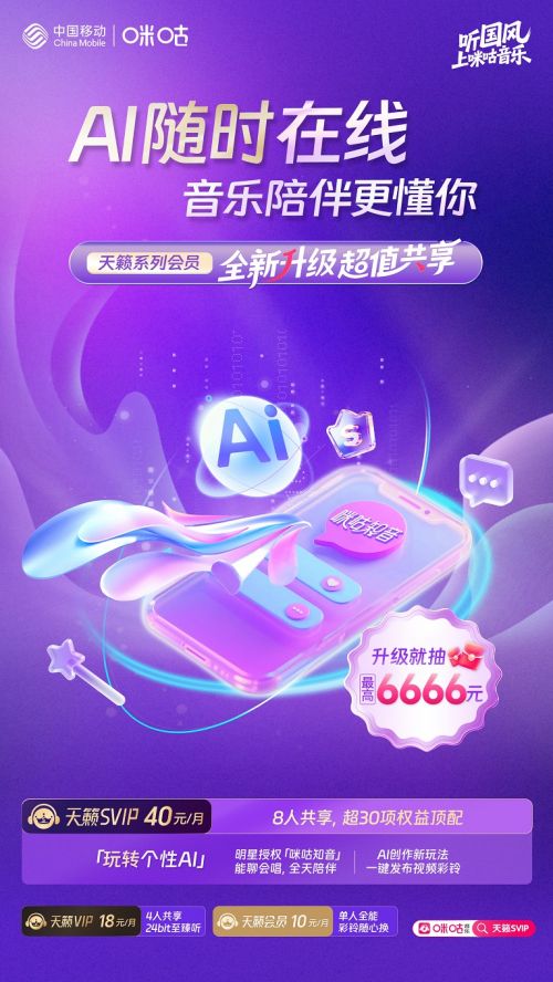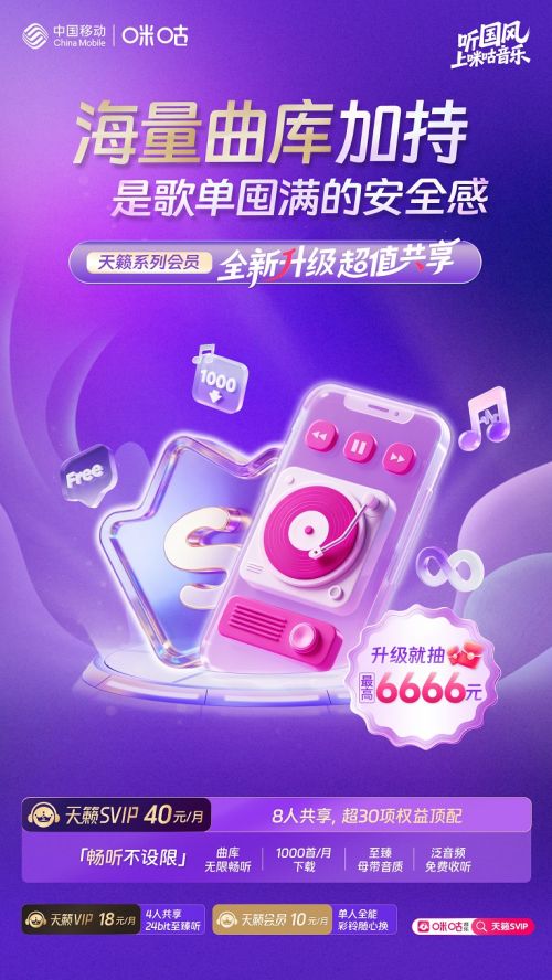 听歌“宝藏APP”又整活了!近日,咪咕音乐天籁会员系列迎来全面升级,天籁 SVIP 全能旗舰产品焕新上线,超30项权益顶配,打造全家共享、追星听歌、AI 权益、宠粉福利全场景覆盖的会员体验。开通任意天籁 SVIP 套餐,即享春日焕新宠粉福利,抽 6666 元红包,福利直接拉满。