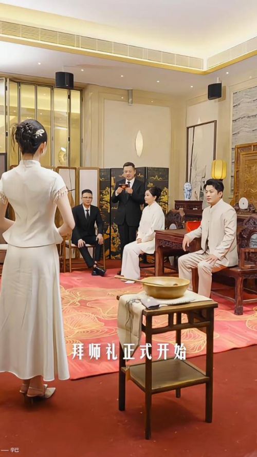 这次收徒仪式的主角徐杰,原名徐婕,是快手粉丝超4600万的头部主播。她于2020年5月签约辛选,同年9月以“辛选新晋美妆主播”身份首秀便创下2.2亿销售额,带货能力可见一斑。在加入辛选6年后,她正式拜师辛巴并更名为徐杰。仪式现场,除了辛巴和妻子初瑞雪,辛选联合创始人小双(张小双)、蓝山(宋铁牛)也一同见证。