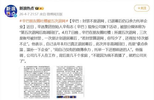 辛巴直接开怼:所谓的“五次退网”,根本就是一笔糊涂账。其中三次,纯粹是因为账号违规被封禁,这能叫主动退网?还有一次,是自己在直播中提到了“计划退居幕后”,仅仅是个计划而已。他略带讽刺地写道:“如果封禁算退网的话,你写少了,还得加上10次都不止。”
