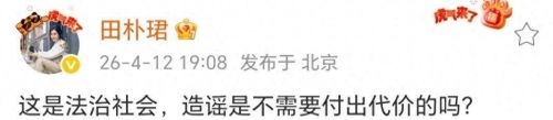 田朴珺没有就此打住。她又发了一条,这次说得更重:“多年来,我与王先生始终秉持一事:无论私事公事,从不解释,亦不辩驳。可总有人为了流量毫无底线,厚颜无耻地造谣生事。这一次,已然欺人太甚。我们必将通过法律途径追究到底,绝不姑息!!!”她在回复媒体询问时确认,已经在去报案的路上。