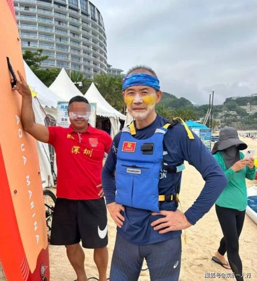 他分享了几张照片。一张是大合照,王石站在中间,穿着休闲外套和运动短裤,头发和胡须已经花白,皮肤能看出年龄带来的松弛,但腰板挺得很直,身材精瘦,肌肉线条清晰。另一张照片里,王石裹着蓝色头巾,脸上涂着白色和黄色的颜料,穿着蓝色长袖泳衣和短裤,外面套着救生衣,双手插在腰间。