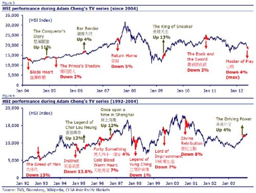 有人大概统计了一下,30年来秋官效应应验了30多次,秋官主演的电视剧有近70%遭遇股市下跌,其跌幅波动于0.1%至26%,平均跌幅4.1%。且剧情越悲情,恒生指数表现越差。