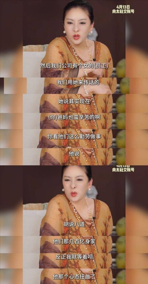 4月13日,向太陈岚又因为小儿子向佑的事上了热搜。她在视频里直言不讳,说向佑这几年做生意亏了好几百万,整天想着躺平继承百亿家产,心态已经彻底扭曲了。