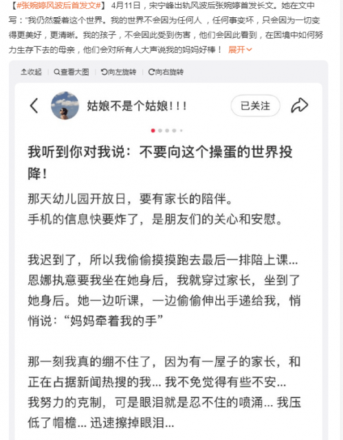 可张婉婷转头就发千字长文,立起为孩子的好妈妈人设。
