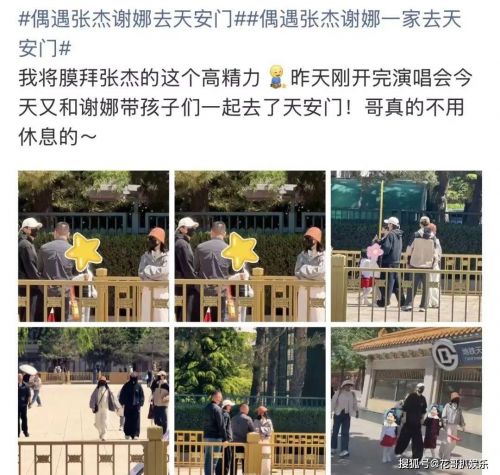 这边演唱会秀恩爱的热度还没下去,另一边张杰谢娜带娃打卡天安门又被拍到,一家子一起上了热搜。